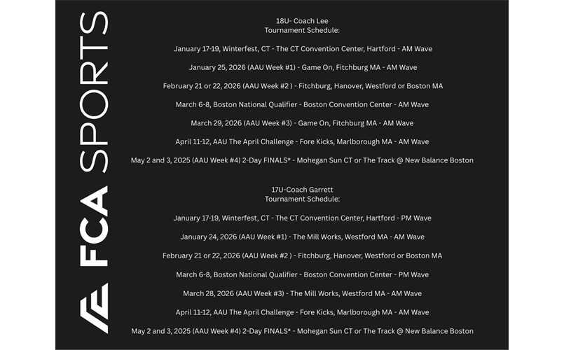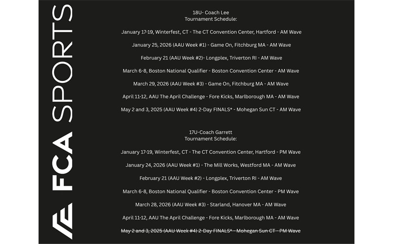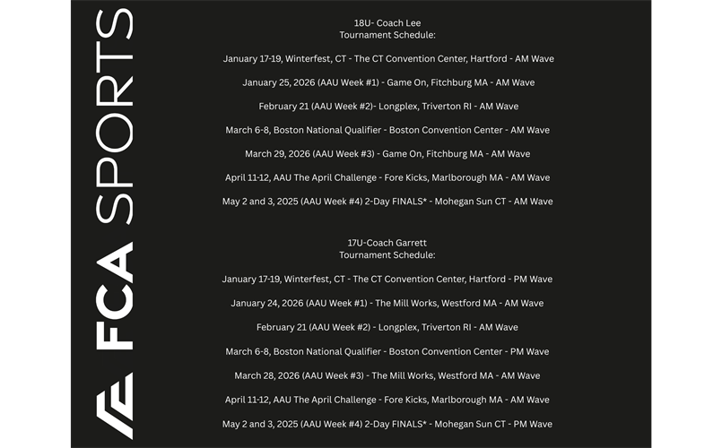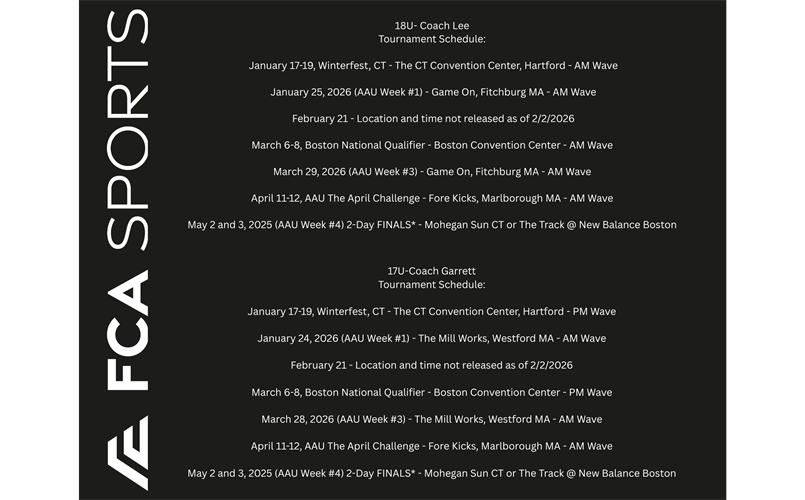 Early Tryout Registration for 17U is now open. Please note schedule change.